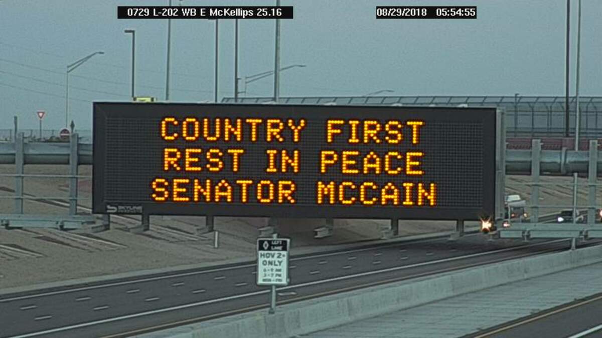 ADOT has a tribute to John McCain on Loop 202 at McKellips with a sign that now reads