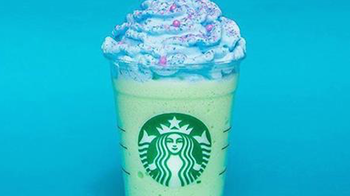 Created by Jocelyn Freeman of The Modern Barista, the pink-and-purple and green beverage is a vanilla bean base blended with freeze-dried blackberries and drizzled with a toasted coconut matcha sauce.