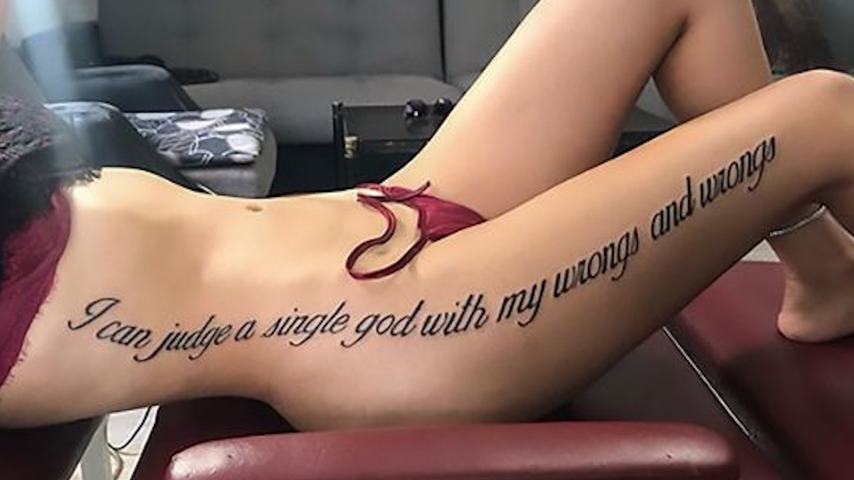 This Instagram model in Turkey wanted to get a well-known phrase inked on her body. Let's just say she did NOT get what she wanted... She wanted the expression "Only God can judge my mistakes and truths," but unfortunately that became "I can judge a single god with my wrongs and wrongs."