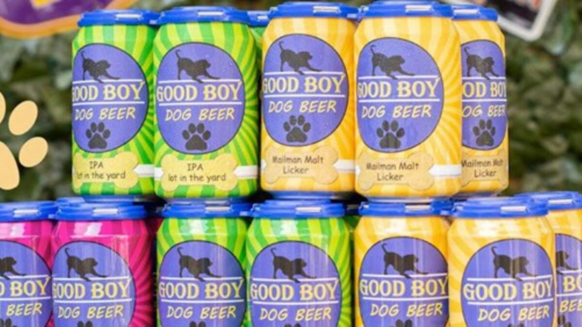 Good Boy Dog Beer, a non-alcoholic dog beer created by Megan and Steve Long who needed a solution for food after their dog was having some digestive issues.